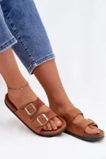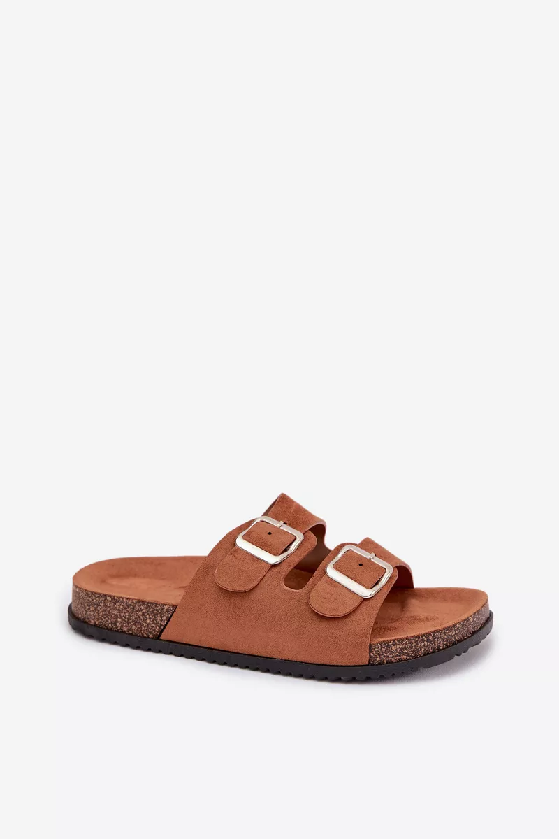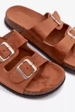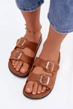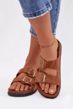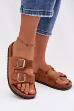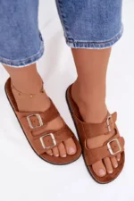 Moteriški šlepetės su sagtimis, kamelės spalvos Oliena