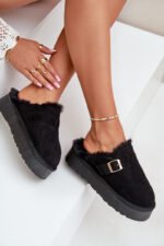 Stilingos moteriškos šlepetės su storu padu – puikus pasirinkimas šaltesnėms dienoms. Paminkštintos minkštu kailiu, jos suteikia išskirtinį komfortą ir šilumą. Papuoštos dirželiu su auksine sagtele. Puikiai tinka dėvėti namuose ir greitai išeiti į lauką. Renkantis dydį, vadovaukitės dydžių lentele.