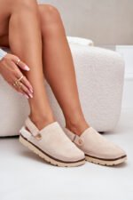 Moteriski šlepetės ant platformos, pagamintos iš eko zomšos, yra stilingas pasirinkimas šaltoms dienoms. Minkštas avikailio tipo kailis viduje užtikrina šilumą ir komfortą. Dėl užsegimo velcro gale jas lengva apsiauti ir pritaikyti prie pėdos. Puikiai tinka tiek namuose, tiek lauke! Renkantis dydį, vadovaukitės dydžių lentele.