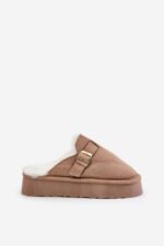 Stilingos moteriškos šlepetės su storu padu – puikus pasirinkimas vėsesnėms dienoms. Paminkštintos minkštu kailiu, jos užtikrina ypatingą komfortą ir šilumą. Papuoštos dirželiu su auksine sagtimi. Puikiai tinka dėvėti namuose ir greitiems išėjimams į lauką. Renkantis dydį, vadovaukitės dydžių lentele.