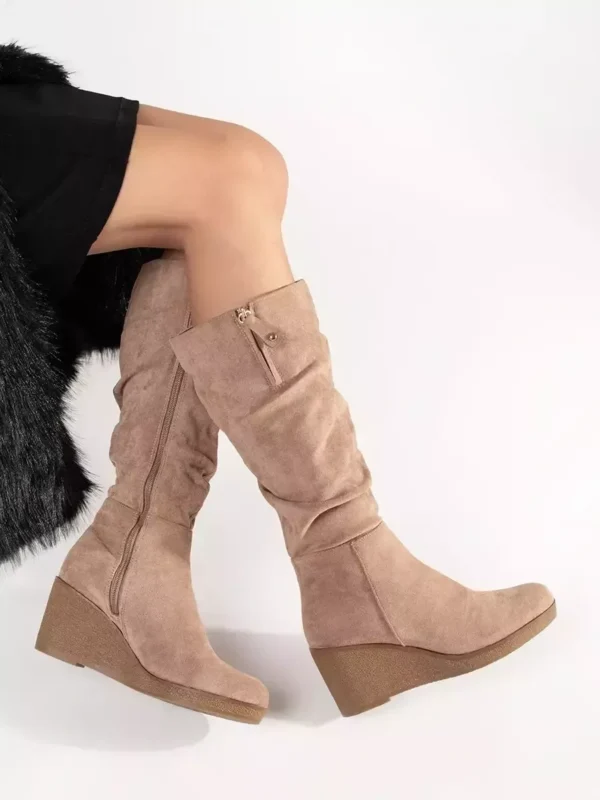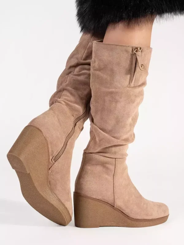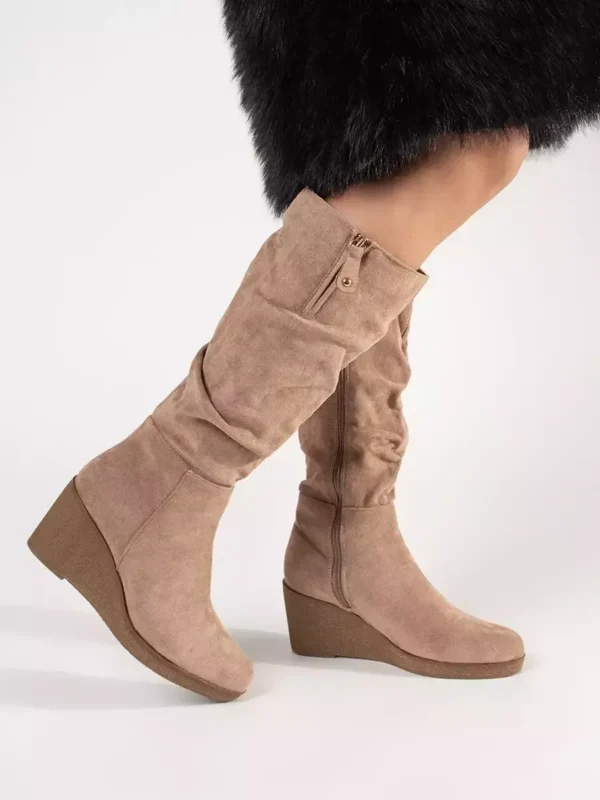 Atraskite naujausią madą su mūsų moteriškomis smėlio spalvos zomšos ilgo aulinuku batus! Šie stilingi ilgaauliai batai puikiai tinka įvairioms progoms ir yra tikras kiekvienos moters spintos perlas. Pagaminti iš aukštos kokybės zomšos, jie ne tik prabangūs, bet ir itin patogūs. Nesvarbu, ar norite sukurti kasdieninį ar elegantišką vakarinį įvaizdį, šie aulinukai bus jūsų pasirinkimas numeris vienas.