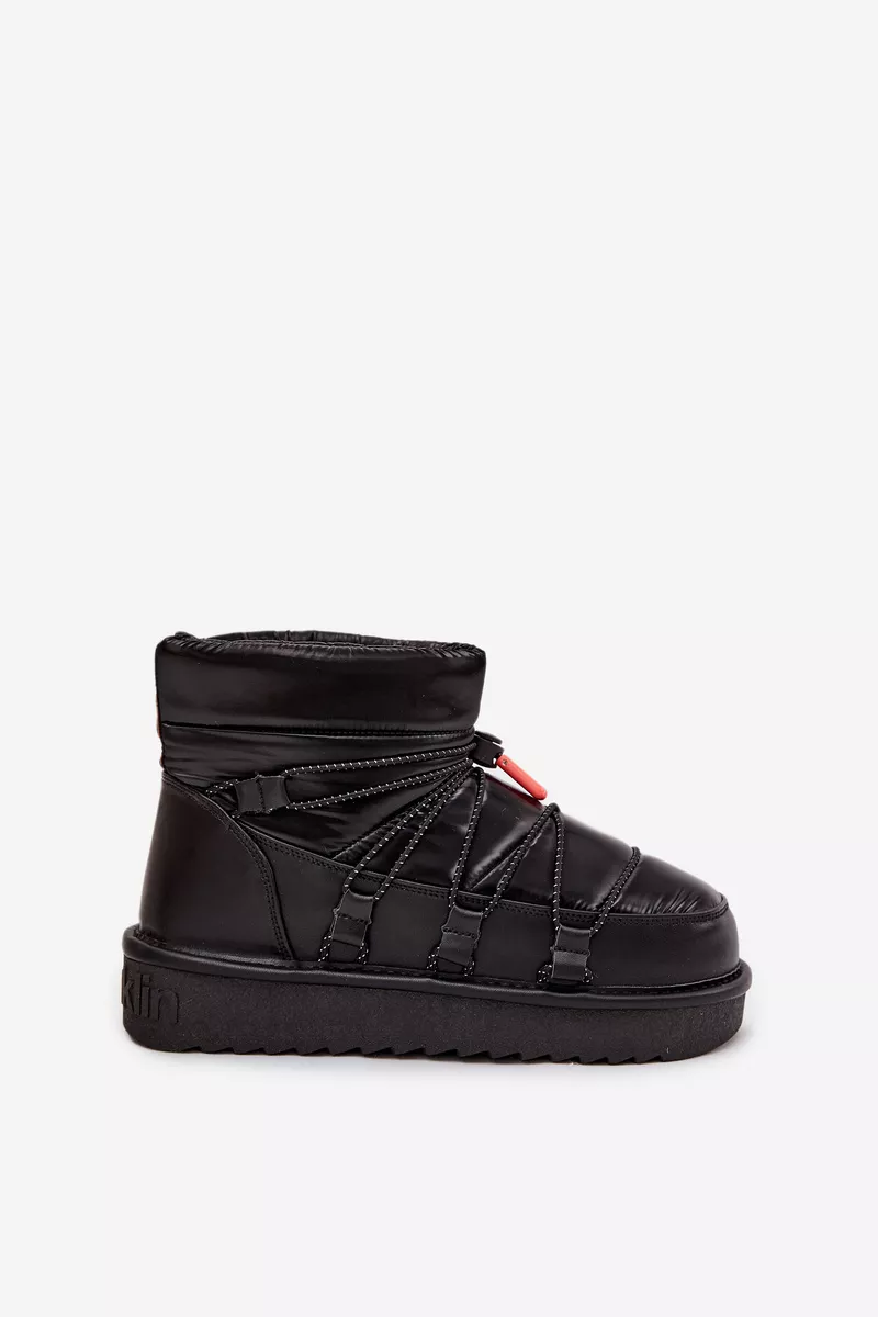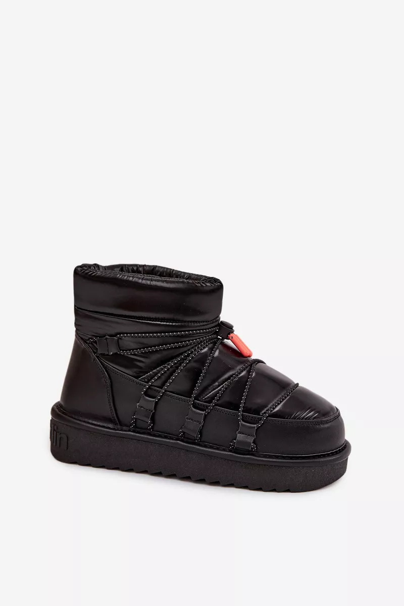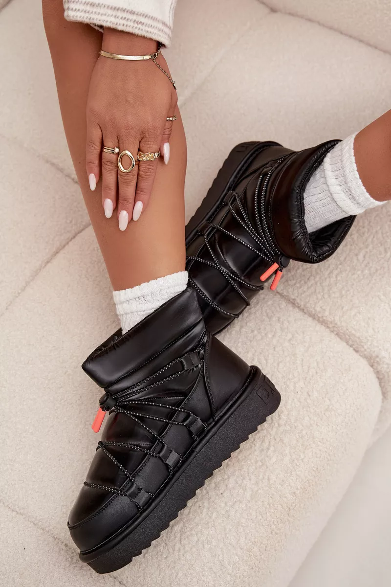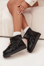 Moteriški sniego batai D.Franklin. Pagaminti iš tvirto nailono ir eko odos, jie veiksmingai apsaugo nuo šalčio ir drėgmės, kartu atrodydami madingai ir stilingai. Minkštu kailiu paminkštintas vidus užtikrina šiluminį komfortą ir patogumą net per šaltą orą. Modelis sumontuotas ant guminio pado, kuris garantuoja stabilumą ir sukibimą su įvairiais paviršiais. Papildomas privalumas – priekyje esanti raištelio juostelė, kuri leidžia geriau priglusti ir apsaugo nuo šalčio patekimo į batų vidų. Tai sniego batai, kurie tiks tiek kasdien, tiek žiemos kelionėms.