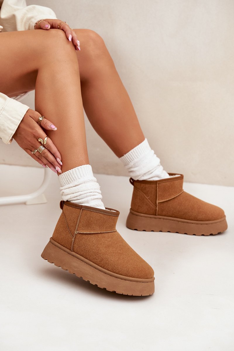Atraskite savo naujus mėgstamiausius žiemos batus – camel spalvos moteriški sniego batai Vesirae yra puikus stiliaus, patogumo ir šilumos derinys. Pagaminti iš minkšto ekologinio zomšo ir pamušti puriu kailiu, jie užtikrina jaukumą net didžiausiame šaltyje. Aukštos auliukinės dalies ir tvirto platformos (apie 3 cm) dėka jūsų pėdos liks sausos ir šiltos vaikštant apsnigtais gatvėmis.