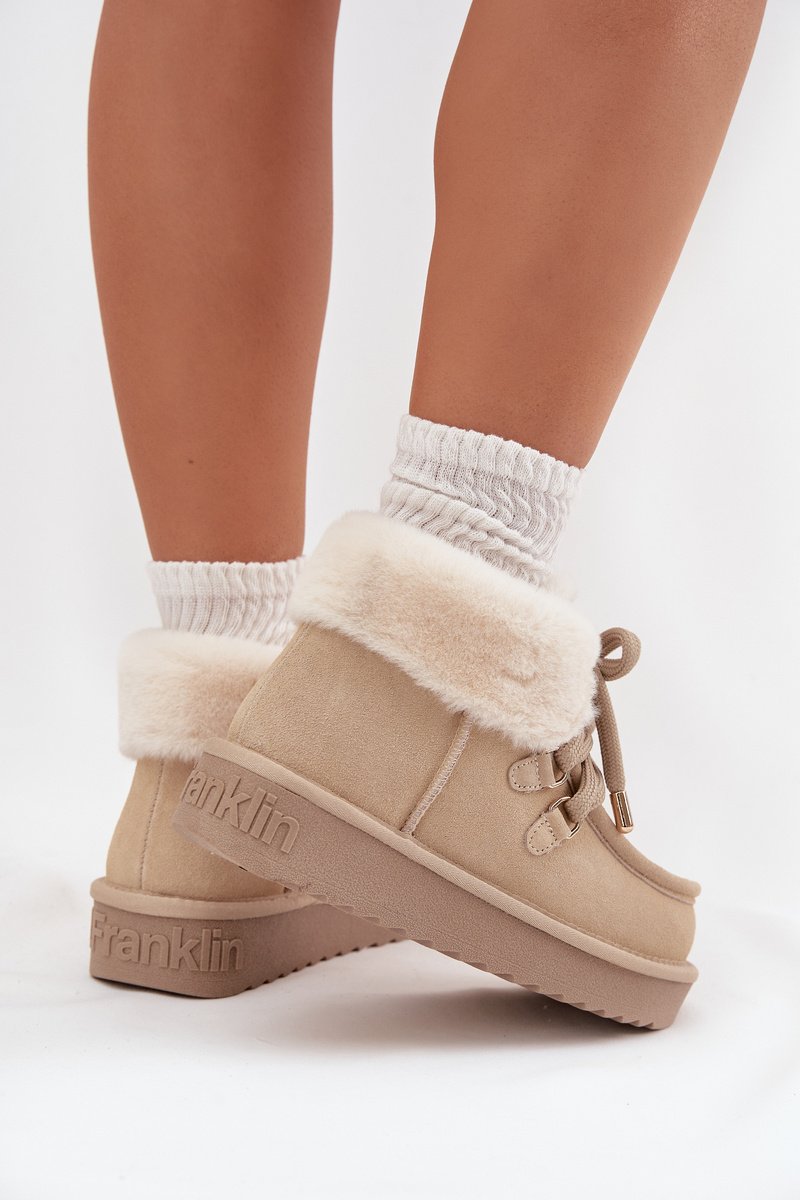 D.Franklin prekės ženklo moteriški sniego batai, pagaminti iš natūralaus zomšos, yra puikus stiliaus ir praktiškumo derinys. Jų žemas modelis atrodo lengvas ir modernus, kartu yra patogus kasdieniam naudojimui. Įsispiriamas modelis su storesniais raišteliais leidžia geriau priglusti prie pėdos, kartu pabrėždamas madingą batų charakterį. Minkštu kailiu paminkštintas vidus užtikrina šiluminį komfortą šaltomis dienomis, o papildomas kailio apvadas viršutinėje aulo dalyje suteikia visumai išskirtinio žavesio. Guminio plastiko padas garantuoja stabilumą ir sukibimą su įvairiais paviršiais, todėl sniego batai yra patikimas pasirinkimas žiemą vaikščiojant. Tai avalynė, jungianti funkcionalumą ir patogumą su madinga išvaizda, puikiai deranti prie žiemos stilių.