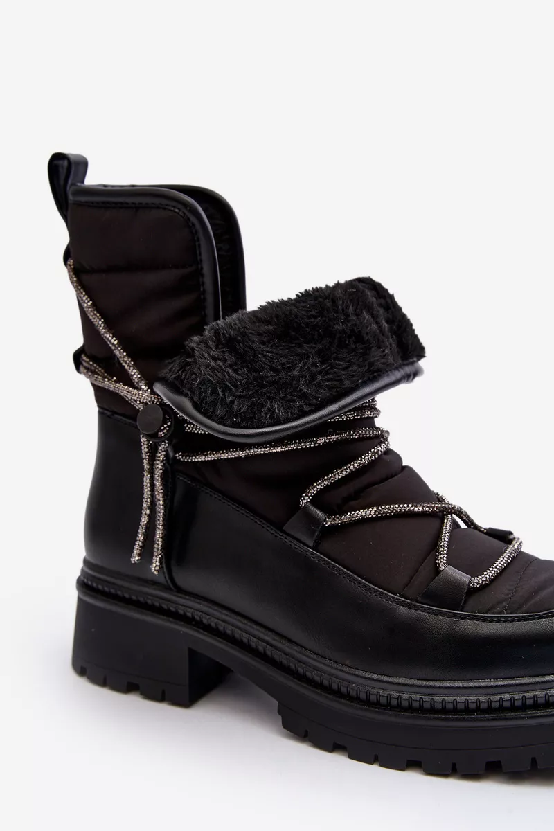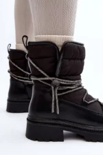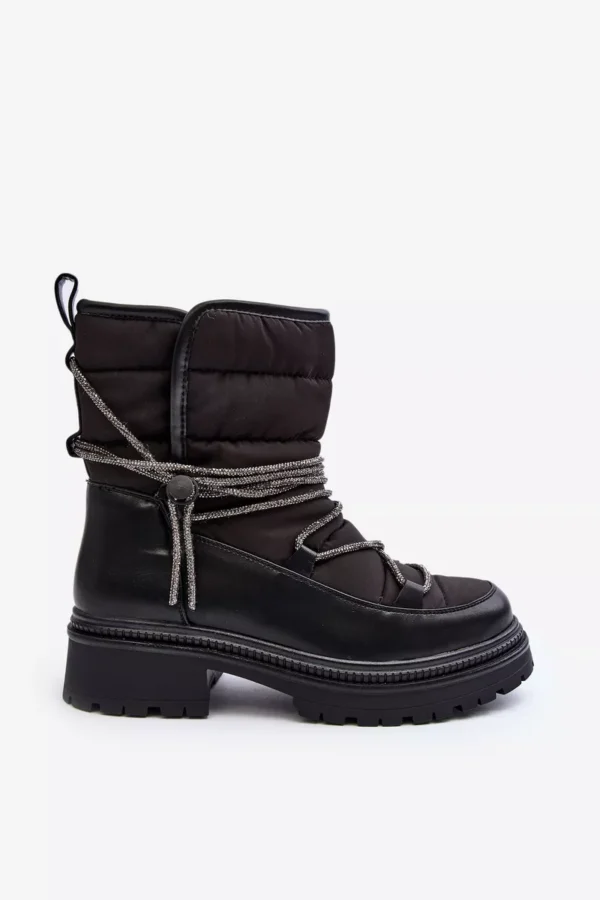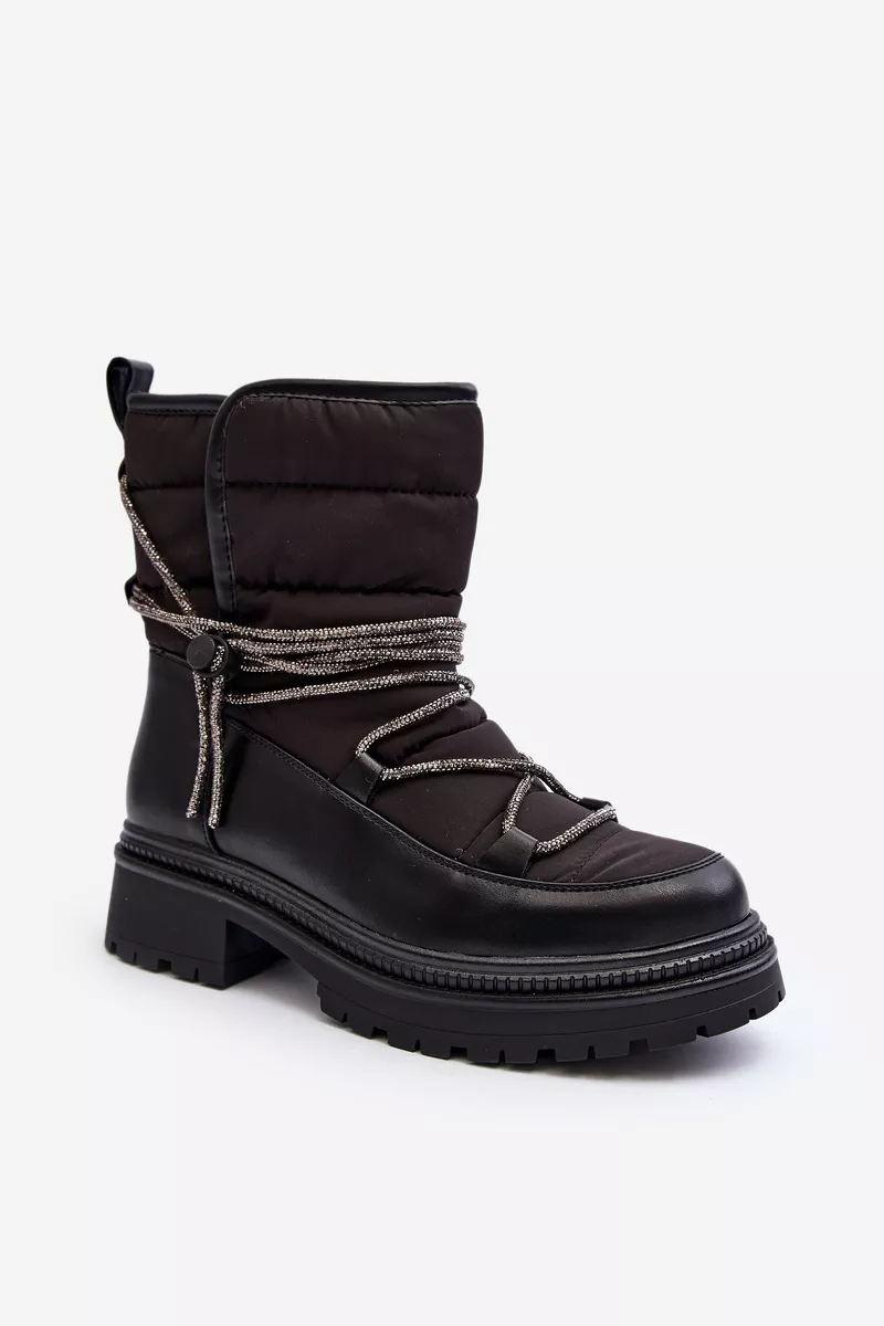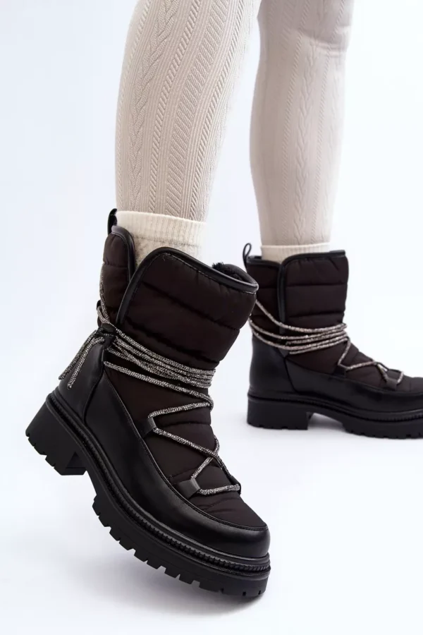 Moteriški sniego batai pagaminti iš medžiagų, kurios efektyviai apsaugo nuo šalčio. Įmontuoti ant storos pado ir plokščio kulno. Bato aulas dekoruotas blizgančiais raišteliais. Įsispiriami modeliai. Apvalūs priekiai. Vidus apšildytas storu kailiu. Be to, kulno dalis yra sutvirtinta. Būtinai turėtumėte juos turėti! Pasirinkdami dydį, vadovaukitės dydžių lentele.