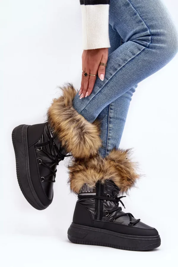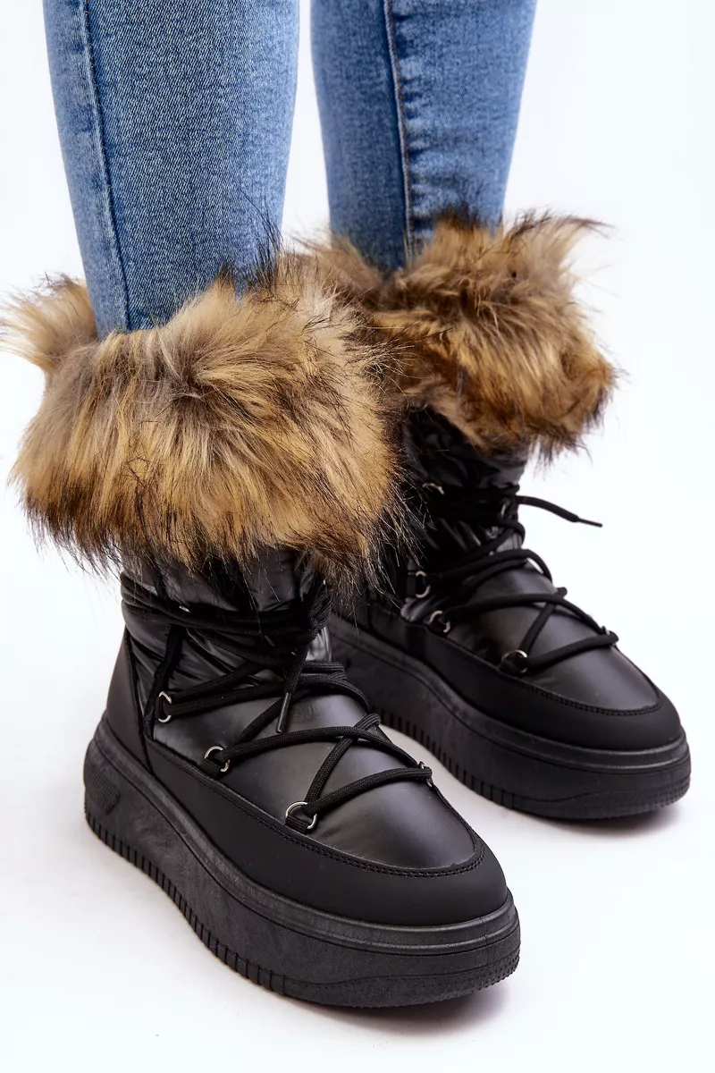 Moteriški sniego batai su kailiu ant platformos, juodi „Nabilla“