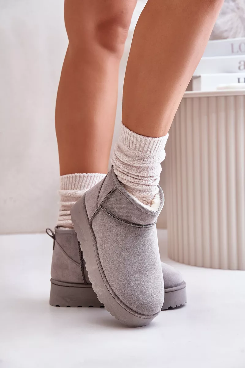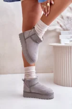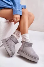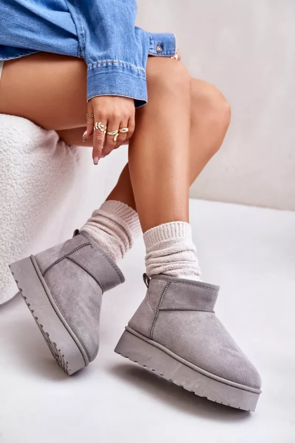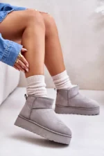 Madingi sniego batai su aulas virš čiurnos. Viduje apšiltinti storu, sintetiniu kailiu. Pagaminti iš eko zomšos. Įmontuoti ant storo gumos platformos, kuri puikiai izoliuos nuo šalto pagrindo. Idealiai tiks šaltomis dienomis. Kelis sezonus madingas modelis puikiai derės prie rudens-žiemos stiliaus! Šis modelis taip pat prieinamas vaikų dydžiais. Sukurkite komplektą mama + vaikas! Pasirinkdami dydį, prašome vadovautis dydžių lentele.