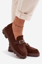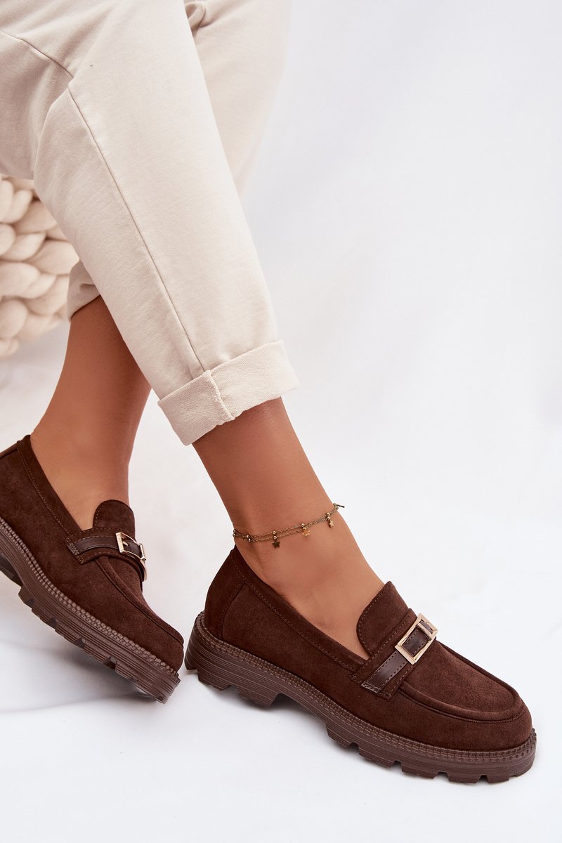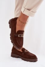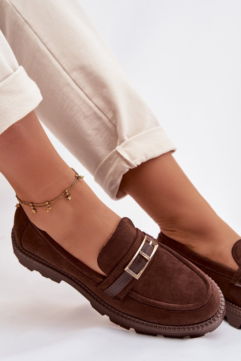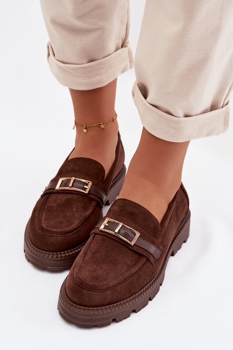 Moteriški šokoladiniai mokasinai su aukso sagtimi Mirelva