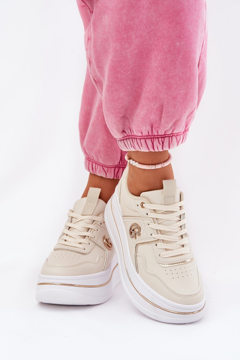 Odinė moteriška platformos sportinė avalynė, smėlio spalvos GOE RR2N4004