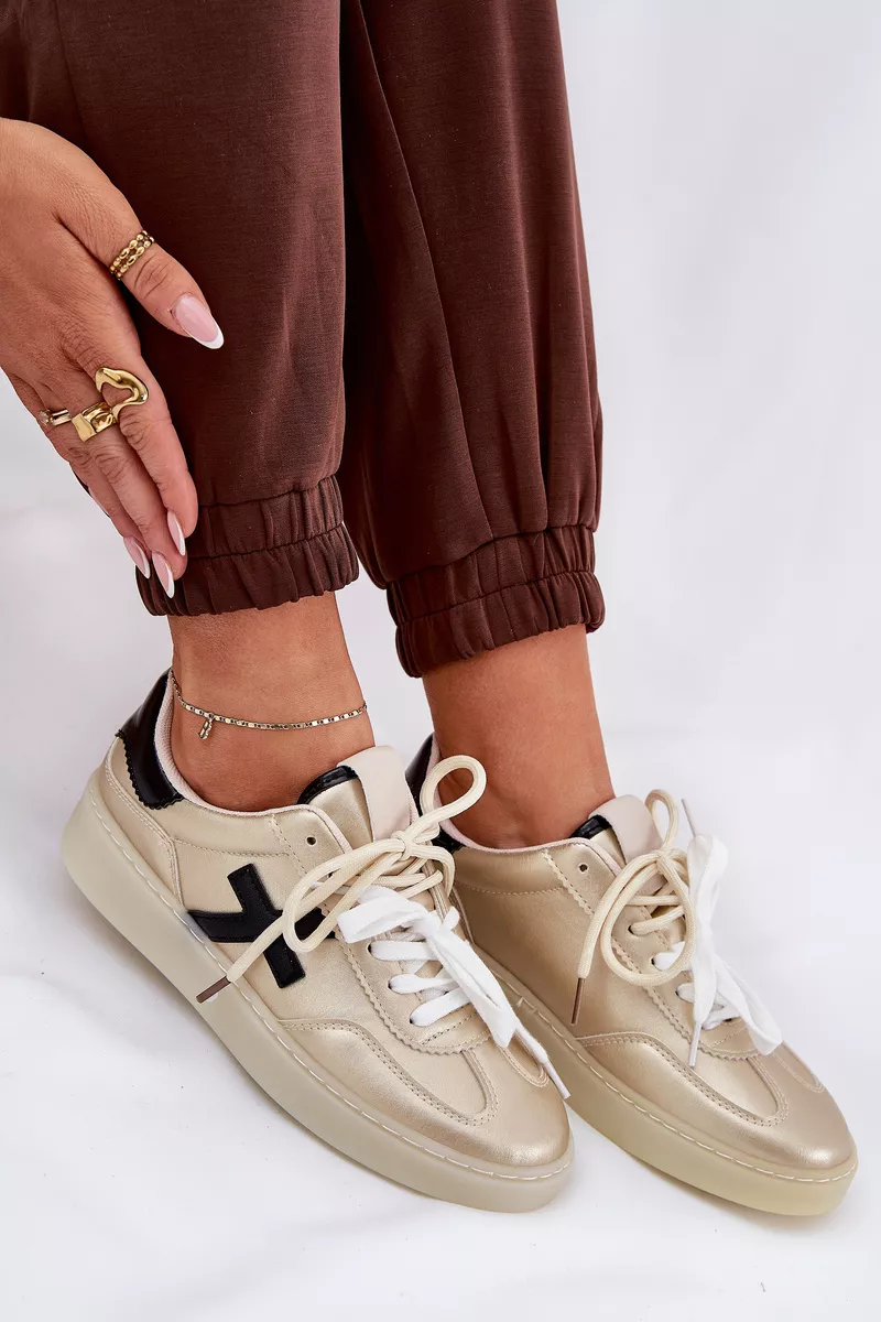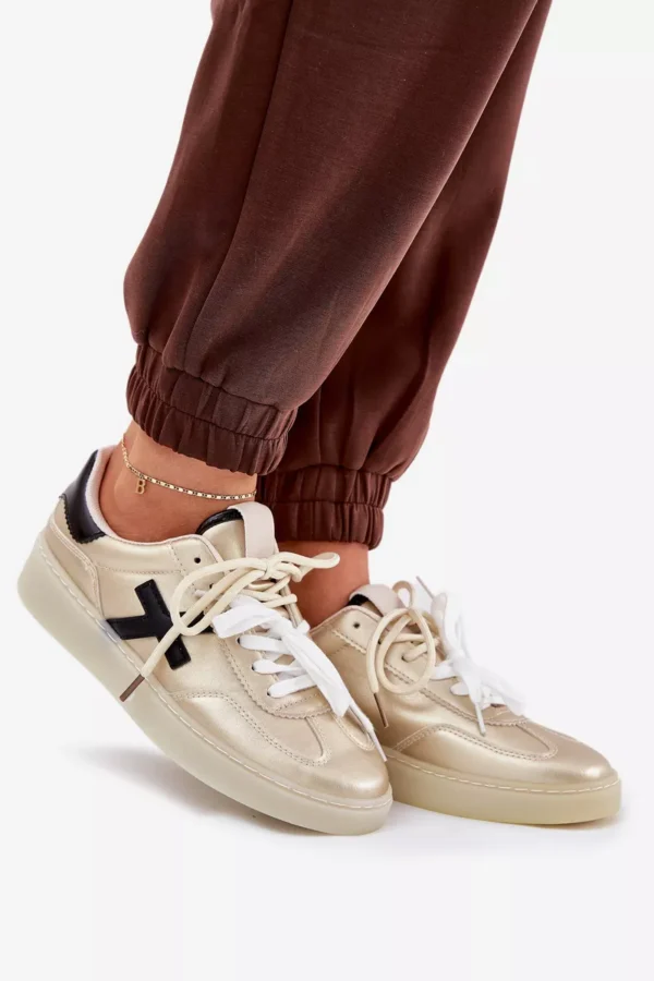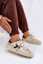 Nuskios moteriškos sportinės avalynės pasižymi ne tik moderniu dizainu, bet ir aukštu komforto lygiu. Šie sportbačiai yra pagaminti iš aplinkos tausojančios odos, kuri užtikrina ilgaamžiškumą bei malonų jausmą avint. Jų subtilus auksinis atspalvis suteikia batams unikalaus žavesio ir leidžia juos derinti prie įvairių aprangos stilių.