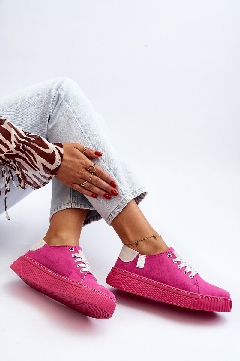Moterweriški sportbačiai iš eko odos. Yra ant storos gumos platformos. Suapvalinti priekiai. Šis modelis turi išskirtinį MEMORY FOAM SYSTEM vidpadį, kuris įsimena pėdos formą, užtikrina puikų prigludimą, sugeria smūgius ir yra atsparus deformacijai. Be to, putplasčio struktūra leidžia išgarinti drėgmę ir reguliuoti temperatūrą. Šis nepaprastai stilingas dizainas būtinai turi atsidurti Jūsų pavasario-vasaros garderobe! Rinkdamiesi dydį, atsižvelkite į dydžių lentelę.