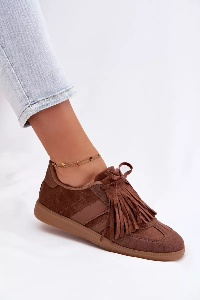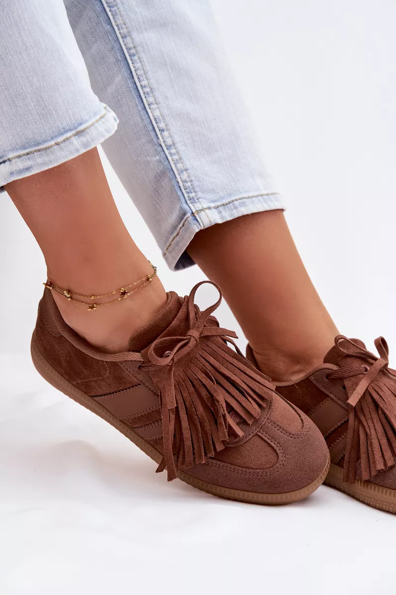 Stilingi moteriški marškiniai su natūralia rudos spalvos zomša yra išskirtinis pasirinkimas moterims, vertinančioms madingą išvaizdą ir komfortą. Batai yra apdailinti dekoratyvinėmis detalėmis priekyje, kurias lengva nuimti, kas suteikia modeliui universalumo. Minkštas, audiniu padengtas putų padas užtikrina visos dienos komfortą. Šie sportiniai batai puikiai tinka kasdieniam miesto įvaizdžiui. Renkantis dydį, atkreipkite dėmesį į dydžių lentelę.