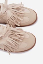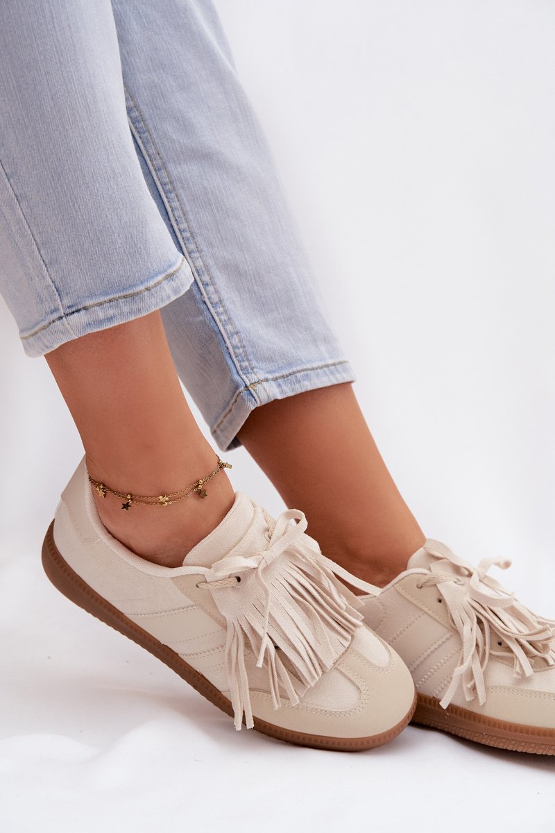 Stilingi moteriški sportiniai bateliai, pagaminti iš ekologiškos odos, yra originalus pasiūlymas moterims, vertinančioms madingą išvaizdą ir komfortą. Batelių priekis papuoštas dekoratyvinėmis kutomis, kurias galima lengvai nuimti, suteikiant modeliui universalų charakterį. Minkšta putų vidpadžiai, papildomai padengti audiniu, užtikrina komfortą visą dieną. Šie sportiniai bateliai puikiai tinka kasdieniam miesto stiliui. Renkantis dydį, prašome remtis dydžių lentele.
