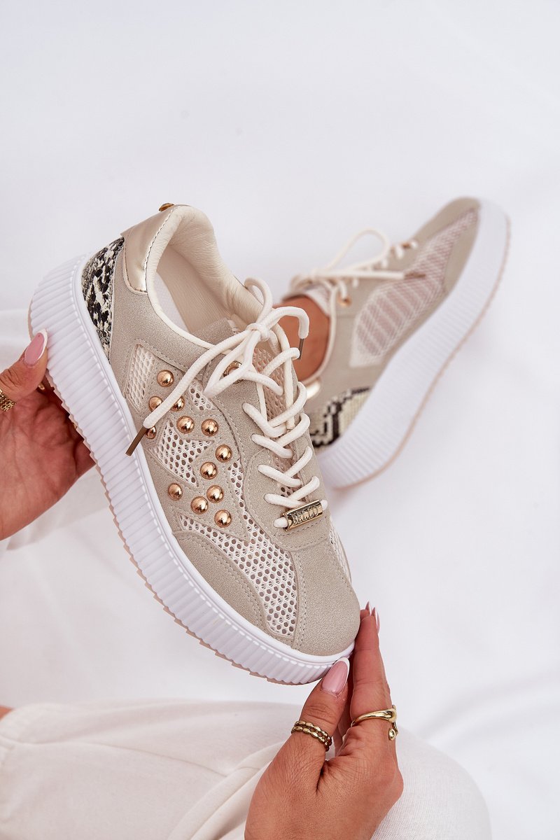 Moteriški sportbačiai, pagaminti iš eko zomšos ir tinklelio derinio, užtikrina lengvumą, pralaidumą orui ir madingą išvaizdą. Ant viršutinės dalies šonų yra kniedės, suteikiančios jiems unikalumo. Viduje yra minkštas putplasčio vidpadis, padengtas audiniu, užtikrinantis komfortą ir amortizaciją vaikščiojant. Šie batai puikiai tinka kasdienėms stilizacijoms, derina funkcionalumą su madingumo akcentu, puikiai tinka aktyvioms ir atsitiktinėms progoms. Pasirinkdami dydį, vadovaukitės dydžių lentele.