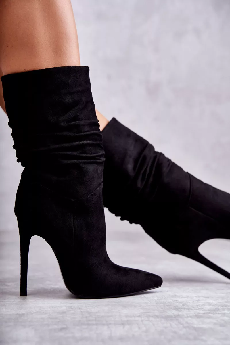 Šie eleganti moteriški batai gaminami iš ekologiškos zomšos, pasižyminčios itin malonia tekstūra. Batų viršus dekoruotas subtiliom klosčių detalėm ir tvirtas kulnas suteikia stabilumo. Smailus piršto forma ir stiletto tipo kulnas vizualiai pailgina ir lieknina kojų linijas. Viduje esanti minkšta pamušalas užtikrina šilumą ir komfortą net šalčiausiomis dienomis. Atsiskleidžia jūsų stilius ir elegancija kiekviename žingsnyje!
