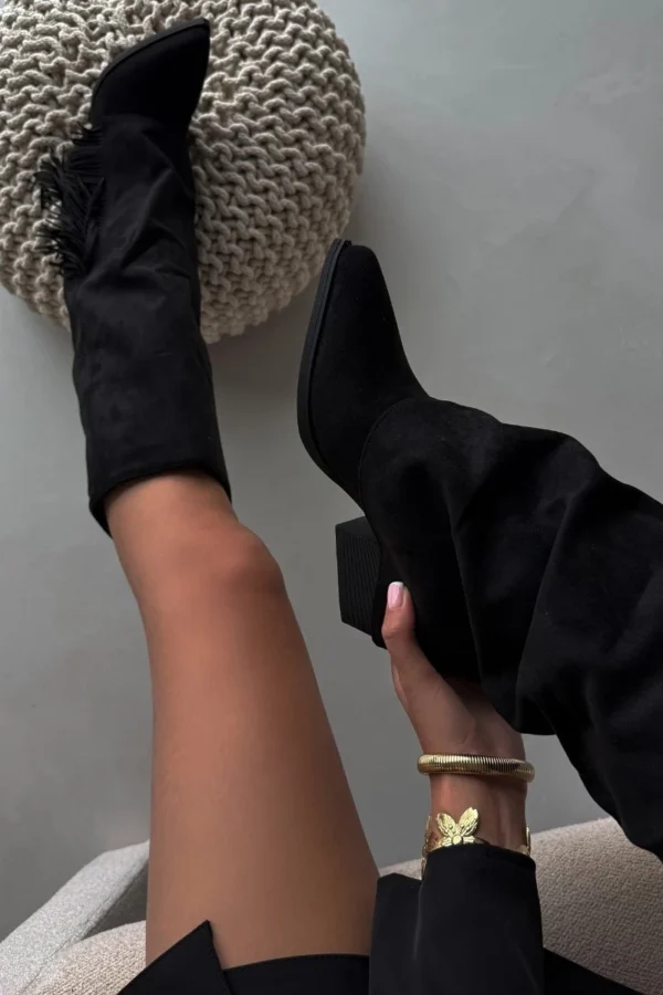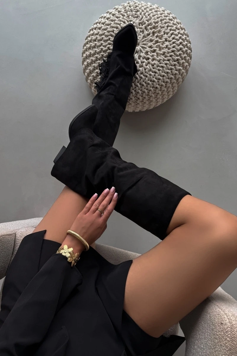 Slidimoji aulinukai kaubojiškos apybraižos iš eko zomšos, su stilingu stulpeliu kulnu – tai patogumo ir stiliaus derinys. Smailios nosytės suteikia elegancijos, o kutais puošta aulinuko viršutinė dalis įneša lengvo boho akcento. Puikiai tinka kasdienėms stilizacijoms, puikiai dera su suknelėmis, sijonais ir kelnėmis, suteikdamos kiekvienai aprangai kaimietiško žavesio. Renkantis dydį, prašome vadovautis dydžių lentele.