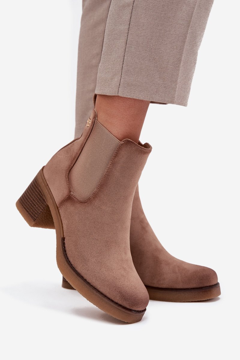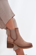 Moteriški aulinukai pagaminti iš eko zomšo. Įmontuoti ant stulpo formos kulniuko, kuris užtikrina stabilumą ir komfortą visą dieną. Su pašiltinimu, garantuoja šilumą vėsesnėmis dienomis, o užtrauktukas palengvina apsiavimą. Šone yra subtilus auksinis detalė, suteikianti jiems elegantiško akcento. Puikiai tinka kasdienėms stilizacijoms, kur reikalingas tiek patogumas, tiek madinga išvaizda. Renkantis dydį, prašome vadovautis dydžių lentele.