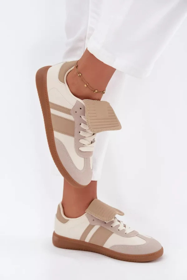 Žemos moteriškos sportbačiai su apverstu liežuvėliu smėlio spalvos „Ardira“ – tai stilingas ir patogus sprendimas madingai moteriai. Sukurti atsižvelgiant į naujausias mados tendencijas, šie sportiniai bateliai derina išskirtinį dizainą su komfortu. Pagaminti iš aplinkai draugiškos medžiagos, jie ne tik puikiai atrodo, bet ir yra atsakingas pasirinkimas.