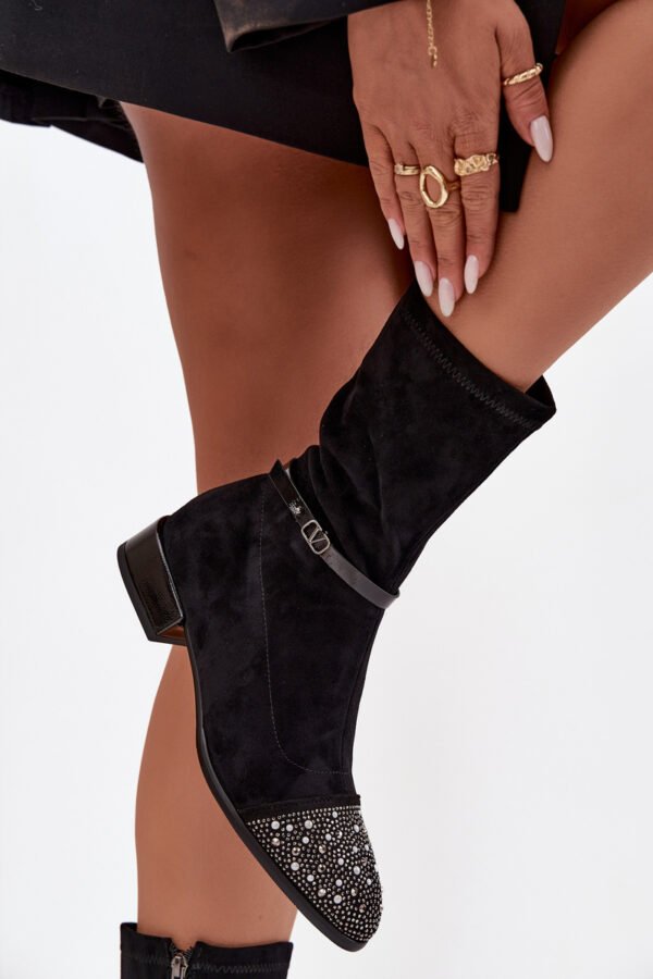 Moteriški aulinukai, pagaminti iš eko zomšos, yra stilingas ir patogus pasirinkimas vėsesnėms dienoms. Pritvirtinti prie žemo kulno, jie garantuoja kasdienį dėvėjimo komfortą, išlaikydami elegantišką išvaizdą. Subtilūs papuošimai ant pirštų ir plonas, dekoratyvinis dirželis ant bato aulo yra dėmesio verti, suteikiantys visumai lengvumo ir moteriškumo. Švelnus pašiltinimas užtikrina malonią šilumą, todėl batai puikiai tiks rudens ir žiemos sezonui.