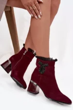 Unikalus batų dizainas suvelūra ne tik suteikia eleganciją, bet ir pilną šilumą, todėl idealiai tinka rudens ir žiemos sezonui. Dekoruoti širdaženkliu ornamentu, šie batai yra nepaprastai dailūs ir moteriški, pabrėžiančius jūsų savitą stilių. Integruotas stabilus kulniukas siūlo komfortą bei optiškai ilgesnes kojas.