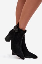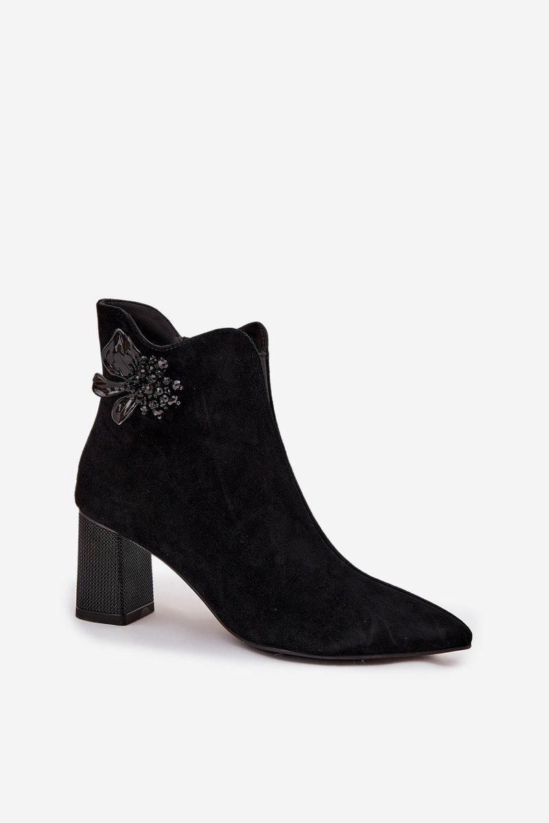 Elegantiškas natūralaus zomšinio moteriškų aulinukų pasiūlymas rudens-žiemos sezonui. Jie išsiskiria liekna linija, paryškinta smailiais priekiais ir palei aulinukų viršutinę dalį einančiu dygsniu, suteikiančiu visumai išraiškingumo. Šone yra dekoratyvus elementas su karoliukais, suteikiantis subtilų, moterišką akcentą. Modelis yra ant stabilaus blokelio formos kulniuko, kuris vizualiai lieknina figūrą ir kartu užtikrina dėvėjimo patogumą. Minkštu aulinukų pamušalu apšildytas vidus garantuoja malonią šilumą vėsesnėmis dienomis. Tai aulinukai, kurie puikiai tiks prie elegantiškesnių ansamblių, suteikdami jiems klasės ir išskirtinio charakterio. Renkantis dydį, prašome vadovautis dydžių lentele.