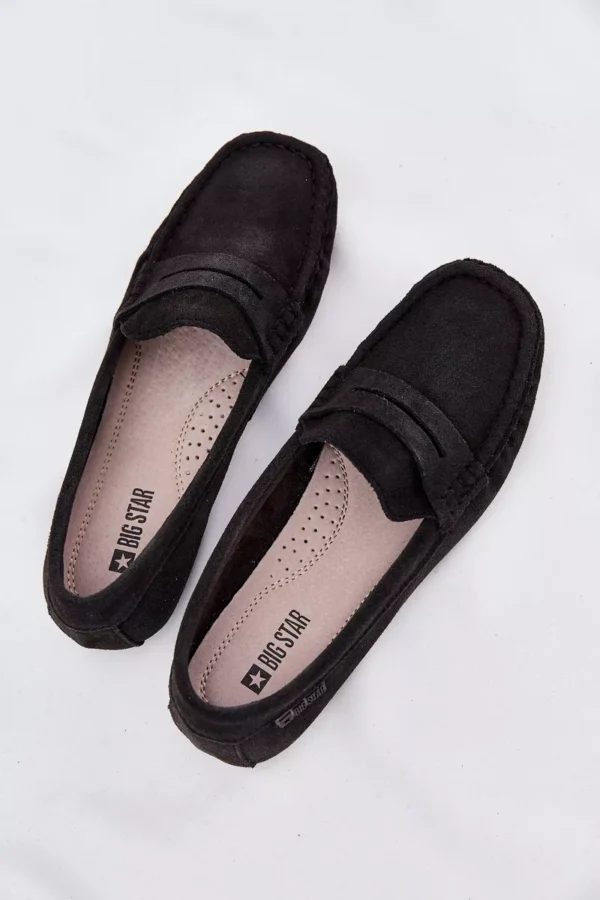 Big Star moteriški velūriniai mokasinai yra puiki komforto ir elegancijos pusiausvyra. Šis juodas modelis pagamintas iš aukštos kokybės natūralios velūro odos, kuri suteikia ne tik išskirtinai malonų pojūtį, bet ir ilgalaikį patvarumą. Be to, apvali nosis garantuoja, kad Jūsų kojos jausis patogiai visą dieną. Viduje esantis minkštos odos padas užtikrina gerą amortizaciją vaikštant.