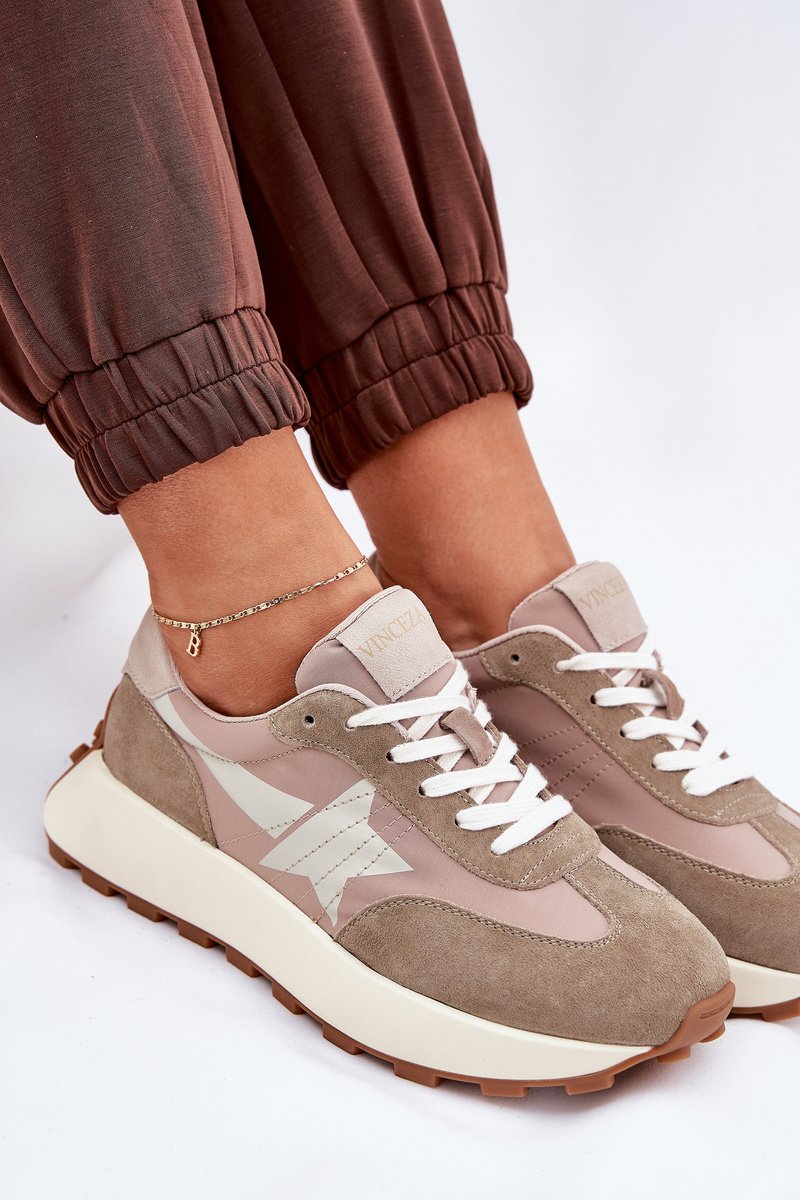 Moteriški zomšiniai sportiniai bateliai ant platformos Vinceza 66720 smėlio spalvos