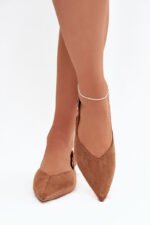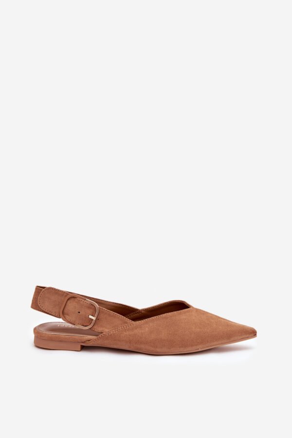 Moteriški balerinos, pagaminti iš ekologiško zomšos, yra stilingas ir patogus pasirinkimas kasdienai. Plokščiapadis modelis garantuoja komfortą, o smailūs priekiai suteikia elegancijos ir subtiliai lieknina pėdą. Gale yra reguliuojamas dirželis su didele, dekoratyvine sagtimi, kuri patraukia dėmesį ir yra madingas akcentas. Tai balerinos, idealiai tinkančios moteriškiems, moderniems deriniams.