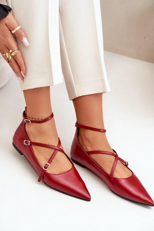 Moteriški balerinos, pagaminti iš eko odos. Užsegamos aplink čiurną reguliuojamu dirželiu, kuris užtikrins idealų prigludimą prie pėdos. Montuojamos ant plokščio kulno. Smailūs priekiai optiškai lieknins kojas. Minkštas vidpadis užtikrins patogumą kiekviename žingsnyje. Šis modelis išsiskiria susipynusiomis, plonomis dirželiais su sagtimi. Nepaprastai madingas kirpimas, kuris turėtų atsirasti jūsų drabužių spintoje! Pasirinkdami dydį, prašome vadovautis dydžių lentele.