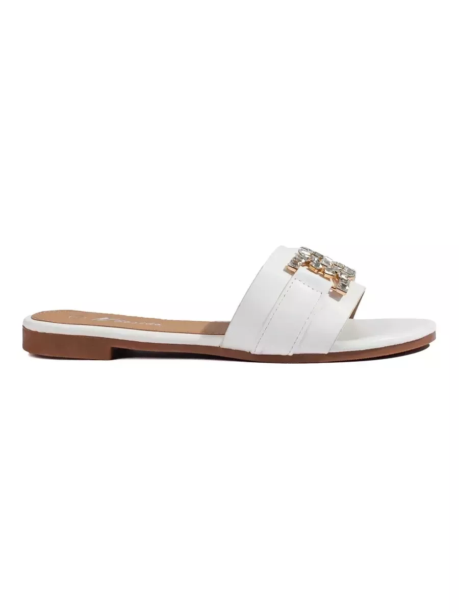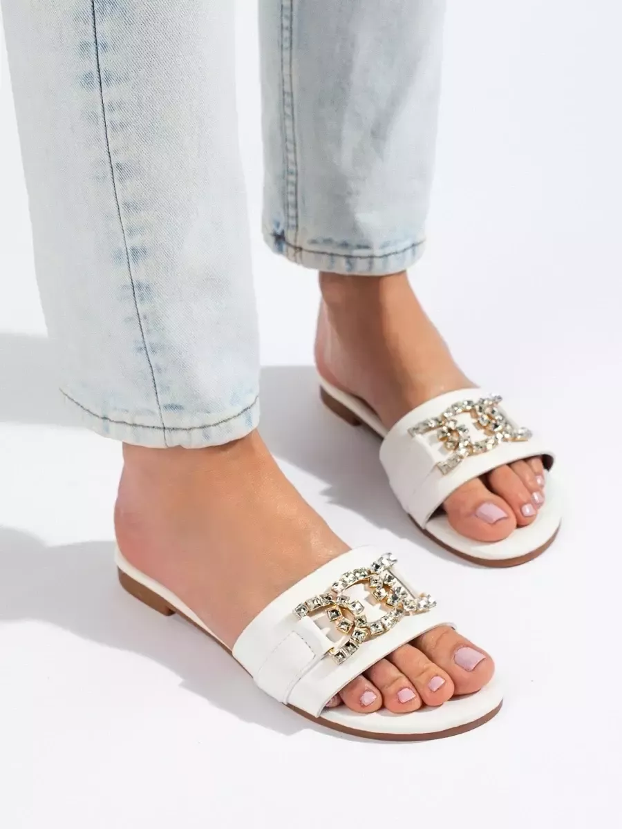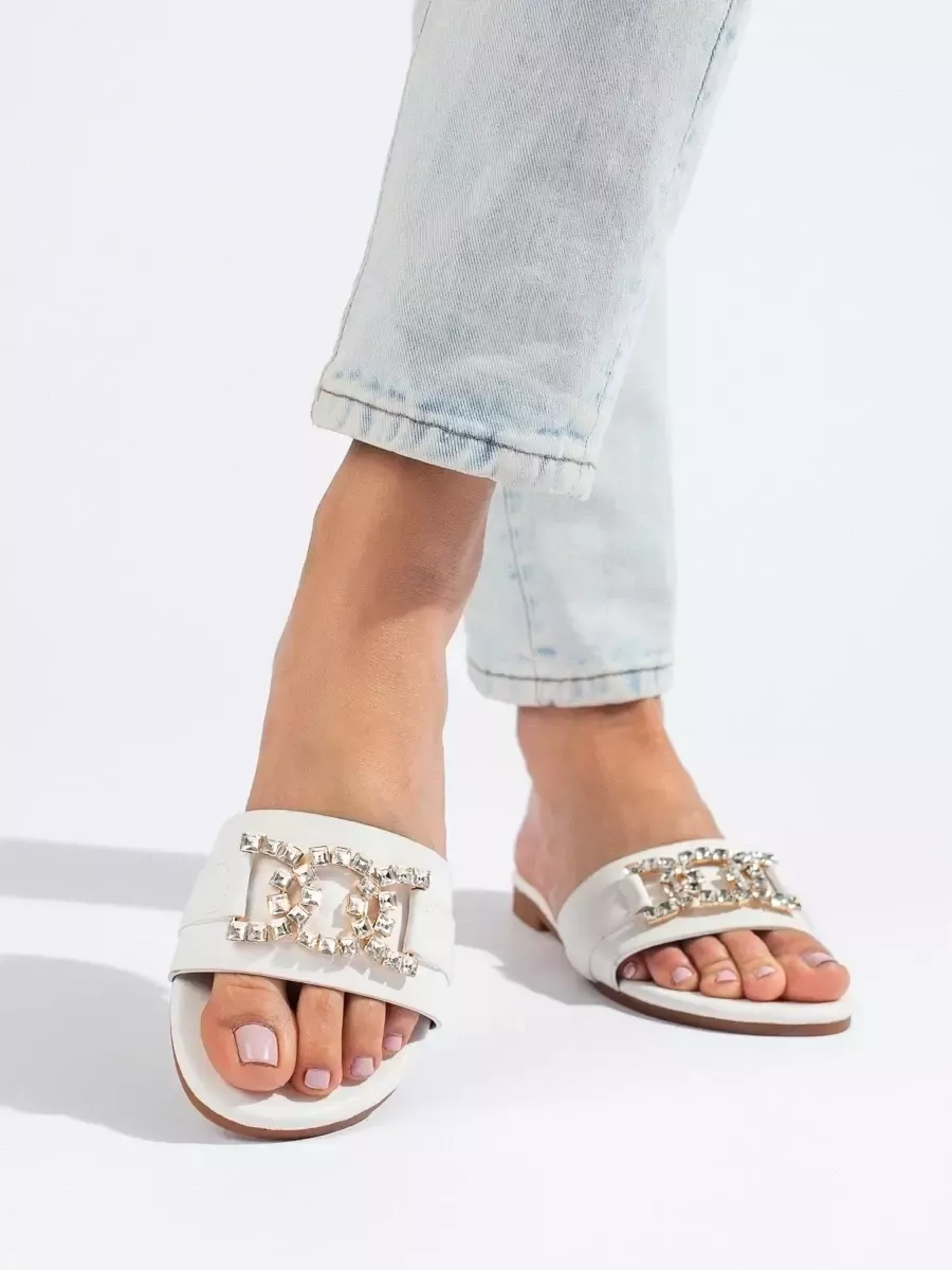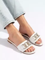 Moteriškos baltos šlepetės su elegantiškomis sagtimis