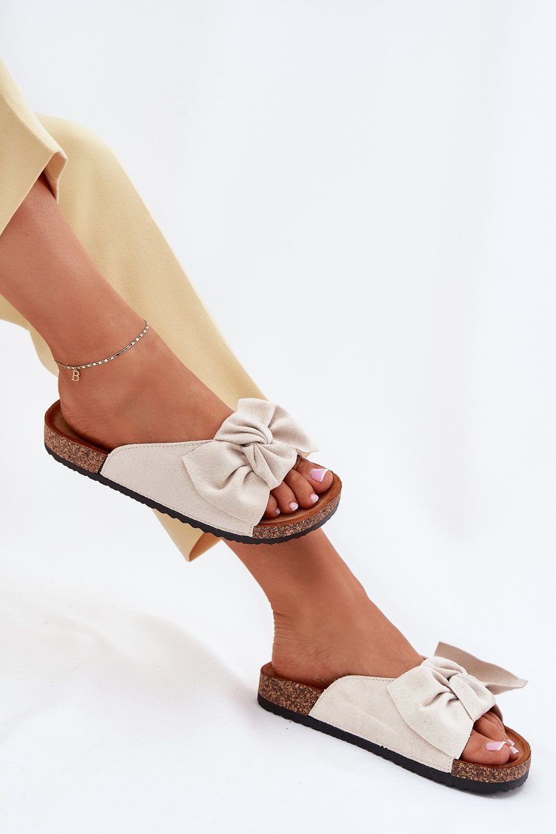 Moteriskos šlepetės iš eko zomšos su kamštienos padu – puikus pasirinkimas šiltoms dienoms. Patogus, profiliuotas vidpadis užtikrina komfortą visą dieną, o priekyje esanti peteliškė suteikia žavesio. Klasikinis modelis, kuris puikiai tiks kasdienėms stilizacijoms. Renkantis dydį, prašome vadovautis dydžių lentelę.