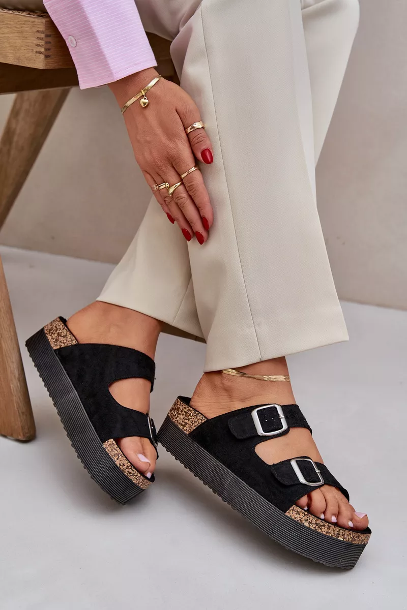 Šie masywios platformos masyvios juodos Aramia sandalai yra elegantiškas ir patogus pasirinkimas moterims, ieškančioms išskirtinės išvaizdos vasaros avalynės. Pagaminti iš tvarios ekologiškos odos, šie sandalai pasižymi unikaliu dizainu su dviem reguliuojamomis sagtimi, kurios užtikrina geriausią pritaikymą ir komfortą.