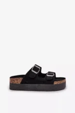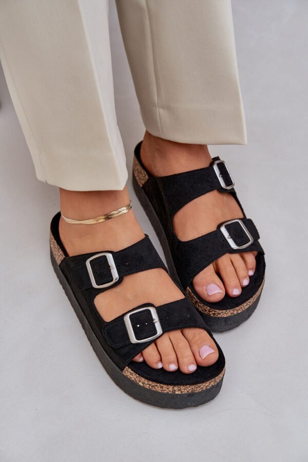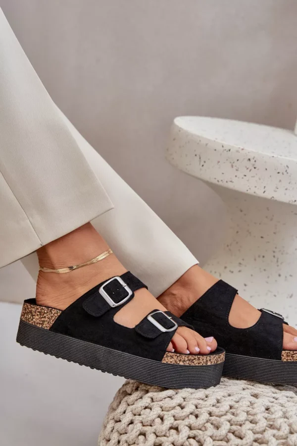 Moteriškos eko zomšinės šlepetės yra patogus ir stilingas pasiūlymas vasaros dienoms. Jos yra ant masyvios platformos, todėl užtikrina komfortą ir stabilumą visą dieną. Dvi reguliuojamos sagtimis juostelės leidžia idealiai pritaikyti šlepetes prie pėdos, o profiliuotas vidpadis padidina patogumą nešiojant. Šios šlepetės yra puikus pasirinkimas karštomis dienomis! Pasirinkdami dydį, prašome vadovautis dydžių lentele.