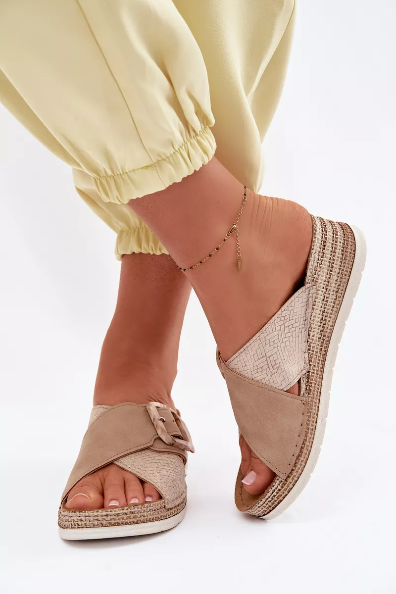 Moteriškos platformos šlepetės su dekoratyviu sagtimi Inblu RV000012 šviesiai smėlio spalvos