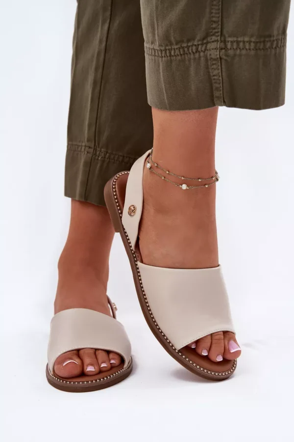 Dailūs dailiosios lyties atstovių sandalai iš ekologiškos odos – elegantiškas pasirinkimas šiltoms dienoms. Plokščias padas užtikrina neįtikėtiną komfortą ir patogumą visą dieną. Sandalas puošia užkulnio dirželis su dekoratyviu elementu, suteikiančiu šarmingą išvaizdą. Dėl savo dizaino, šie sandalai puikiai dera su suknelėmis, sijonais ir odinėmis kelnėmis, tad jie puikiai papildys jūsų vasaros garderobą.
