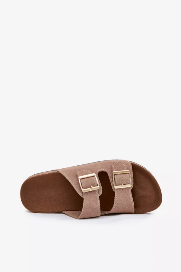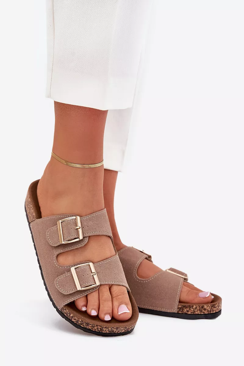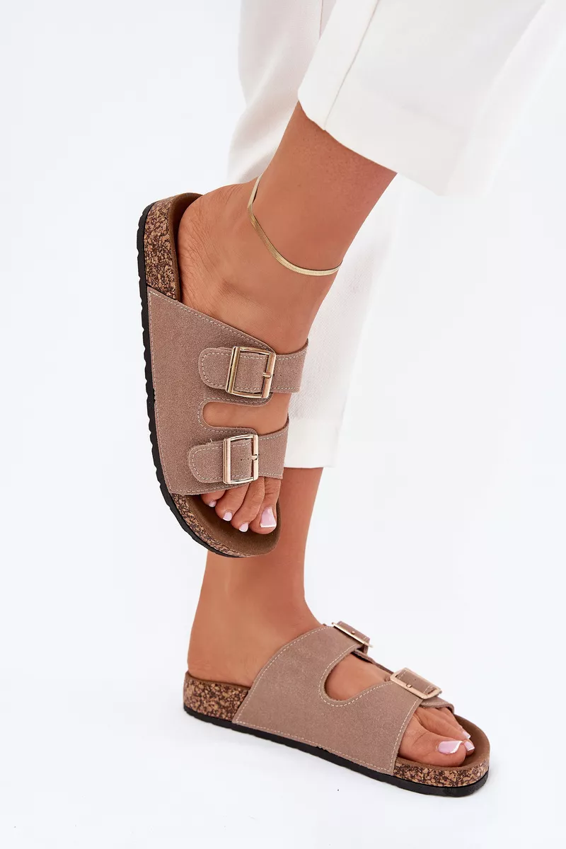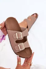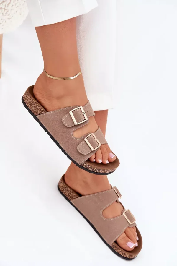 Dvi auksinės sagtelės suteikia sandalams prabangos akcentą, o reguliuojamų dirželių dėka galima pritaikyti dydį pagal jūsų pėdą, užtikrinant maksimalų stabilumą. Sandalų forma pritaikyta pėdos kontūrams, tad net ir ilgiausią dieną jausitės patogiai.