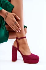Sandalių audinys, padengtas blizgančiu brokatu, suteikia ypatingo žavesio ir iškart pritraukia dėmesį. Tamsiai rožinis atspalvis atrodo įspūdingai ir puikiai tinka vakaro išėjimams. Tai puiki detalė, kuri papildo bet kokią madingą garderobo kolekciją. Pridėtas dirželis aplink kulkšnį su sagtimi leidžia lengvai pritaikyti sandales individualiai pėdai, užtikrinant maksimalų patogumą.