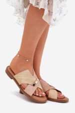 Moteriškos šlepetės, prekės ženklo Vinceza. Pagamintos iš eko odos. Įmontuotos ant plokščio kulno, jos užtikrina komfortą ir stabilumą visą dieną. Priekyje yra dekoratyvus, auksinis elementas. Minkštas vidpadis užtikrina dėvėjimo patogumą, todėl šios šlepetės yra puikus pasirinkimas vasaros įvaizdžiui, tiek kasdieniui, tiek elegantiškesniam. Renkantis dydį, prašome vadovautis dydžių lentele.