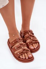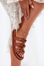 Moteriškos šlepetės, pagamintos iš eko odos, yra puikus pasirinkimas šiltesnėms dienoms. Montuojamos ant subtilios platformos, jos suteikia subtilų pakilimą ir nešiojimo komfortą. Priekyje jas puošia dekoratyvinės juostelės, suteikiančios visumai madingą, moterišką charakterį. Idealiai tinka kasdienėms stilizacijoms. Renkantis dydį, prašome vadovautis dydžių lentele.