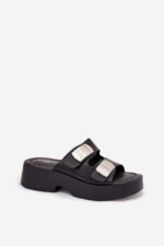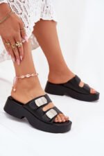 Moteriškos šlepetės, pagamintos iš eko odos, ant platformos ir plokščio kulno, yra klasikinis ir patogus pasirinkimas kiekvienai dienai. Modelyje yra du dirželiai su sidabriniais elementais. Minkštas vidpadis padidina naudojimo komfortą. Puikiai tinka įvairiems įvaizdžiams, derina paprastumą su elegancija, idealiai tinka šiltoms dienoms. Pasirinkdami dydį, vadovaukitės dydžių lentelė.