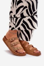 Moteriškos šlepetės, pagamintos iš eko zomšos, puikus pasirinkimas šiltoms dienoms. Šis modelis turi tris reguliuojamus dirželius su sagtimis, kurie užtikrins puikų prigludimą prie pėdos. Profiliuotas vidpadis garantuoja patogumą visą dieną, todėl šios šlepetės yra puikus pasirinkimas pasivaikščiojimams ar atostogų kelionėms. Pasirinkdami dydį, prašome vadovautis dydžių lentele.