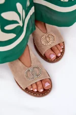 Šie moteriški sandalai su dekoracija ir plokščia pakaba yra stilingas pasirinkimas šiltesniems orams. Pagaminti iš aukštos kokybės eko zamšo, jie ne tik suteikia elegancijos, bet ir užtikrina nepaprastą komfortą visą dieną.