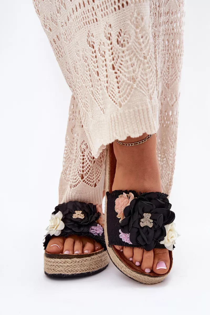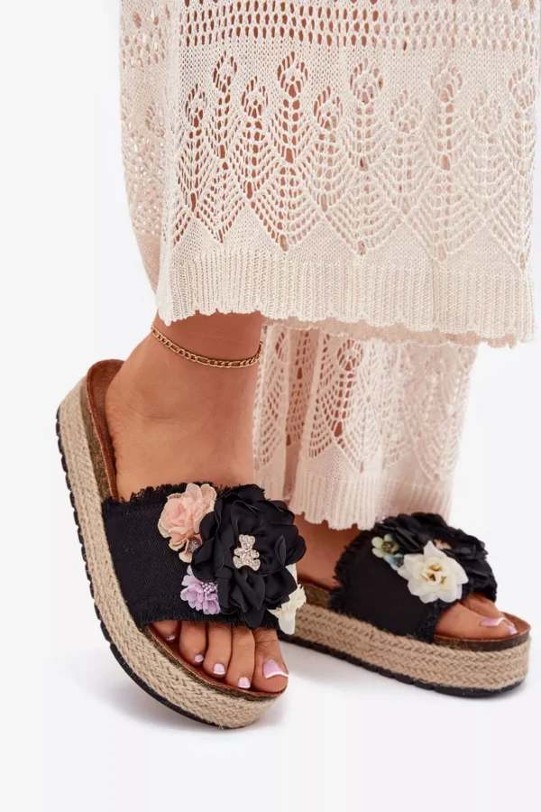 Atraskite įspūdį su elegantiškomis moteriškomis sandalėmis su gėlių dekoracijomis. Šios sandalės, pagamintos kruopščiai iš itin kokybiškos medžiagos, yra ne tik stilingos, bet ir patogios. Laikikliai su reguliuojamais diržais užtikrina puikų prisitaikymą prie jūsų pėdos, o masyvi platforma siūlo papildomą aukštį, be afekto komfortui.