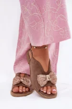 Šių moteriškų sandalų modelis yra puikus stiliaus ir komforto derinys, idealiai tinkantis vasaros sezonui. Sandalai pagaminti iš ekologiškos zomšos, kuri suteikia ne tik elegantišką išvaizdą, bet ir komfortą nešioti. Pastelinis kavos atspalvis puikiai dera su bet kokiu garderobu, pridėdamas subtilų šarmo akcentą.