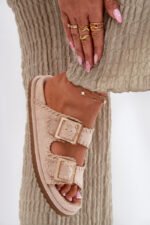 Moteriškos eko zomšos šlepetės, kurios traukia akį dekoratyviniu apdirbimu ir efektingomis sagtimis priekyje. Dėvėjimo komfortą užtikrina profiliuotas vidpadis, puikiai prisitaikantis prie pėdos formos. Šis madingas modelis puikus pasirinkimas vasaros dienoms – idealus tiek miesto stiliui, tiek atostogų išvykoms! Renkantis dydį, prašome vadovautis dydžių lentele.