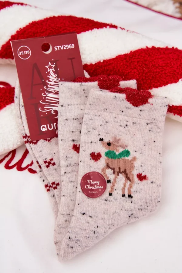 Šiltos moteriškos kojinės su šventiniais raštais – puikus būdas įnešti šiek tiek žavesio ir jaukumo į žiemos dienas. Minkštos ir patogios, puikiai šildo kojas, o kartu atrodo nepaprastai žavingai. Tai taip pat puiki dovanų idėja!