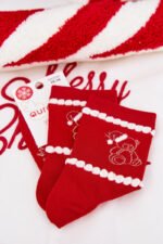 Moteriškos kojinės šventine dvasia – žavus aksesuaras, kuris suteiks žiemos atmosferos kasdienėms stilizacijoms. Galimos keliais raštais. Patogios ir žavios – puikiai tinka kasdienai, kaip dovana ar subtilus šventinis garderobo akcentas.