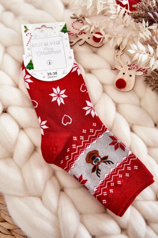 Moteriškos kalėdinės kojinės “Blizgantys elniai” yra ne tik funkcionalios, bet ir itin stilingos. Pagamintos iš aukštos kokybės tvirto medvilnės audinio, kuris garantuoja ilgaamžiškumą ir komfortą. Kojinių paviršius dekoruotas žaismingais kalėdiniais motyvais, kurie sukurs šventinę nuotaiką. Be to, jos papuoštos lureksu – metalizuotu siūlu, suteikiančiu blizgesio ir elegancijos.
