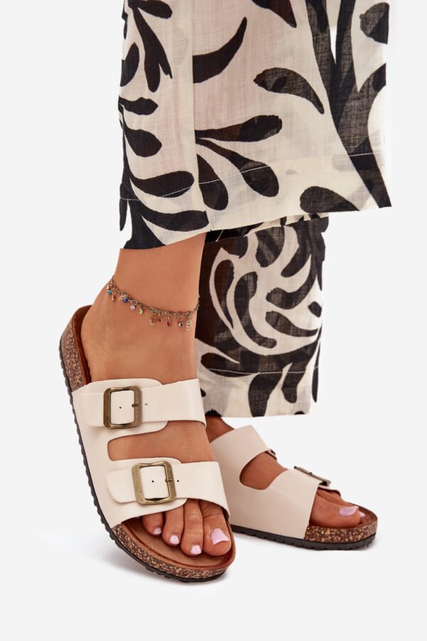 Moteriskos šlepetės su kamštinio pado platforma ir profiliuotu eko zomšo vidpadžiu – tai komforto ir madingos išvaizdos derinys. Du dirželiai su reguliuojamomis sagtimis užtikrina idealų prigludimą, o jų moderni išvaizda atitinka naujausias sezono tendencijas. Puikiai tinka vasaros stiliui, puikiai dera su suknelėmis, sijonais ar kelnėmis, suteikdami kiekvienai aprangai lengvumo. Renkantis dydį, prašome vadovautis dydžių lentele.