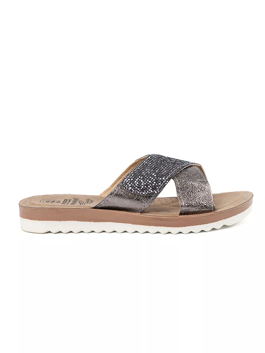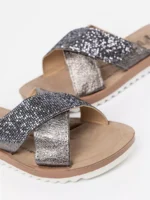 Atraskite naująjį savo garderobo favoritą – metalinio blizgesio moteriškas šlepetes su balto pado dizainu. Šios šlepetės yra puikus pasirinkimas šiuolaikinei moteriai, vertinančiai tiek stilių, tiek nepralenkiamą komfortą. Sukurtos atkreipiant dėmesį į detales, jos akimirksniu suteiks jūsų įvaizdžiui modernumo ir elegancijos. Metalizuota apdaila ne tik traukia akį, bet ir atspindi šviesą, suteikdama subtilų, tačiau ryškų akcentą. Klasikinis, bet visada aktualus šlepečių dizainas užtikrina lengvą ir greitą avėjimą, o tvirtas baltas padas – ilgalaikį dėvėjimąsi ir puikų sukibimą su įvairiais paviršiais. Tai avalynė, kuri papildys tiek jūsų kasdienius laisvalaikio derinius, tiek taps stilingu akcentu ypatingesnėms progoms.